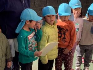 2025.01.17 お知らせ, 神ノ木保育園 小学生からの招待状 西寺尾小学校の1年生が招待状を持って訪問してくれました 「今度遊びに行けるのかな?」 5歳児クラスの子どもたちはワクワク♪ 当日を楽しみにしています
