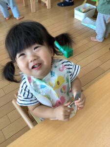 完了期食には、スティック野菜が付き「手づかみ食べ」の練習をします♪