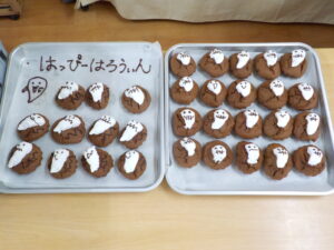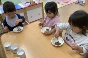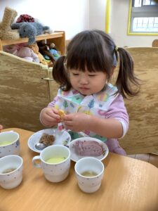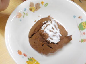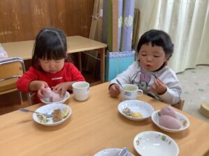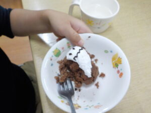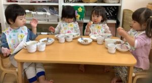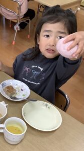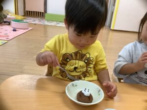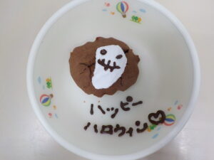 友だちのおばけはどんな顔?と話をしながら食べていました。