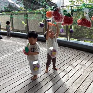 テラスにたくさん実った秋の味覚をとりに行きました♪