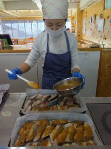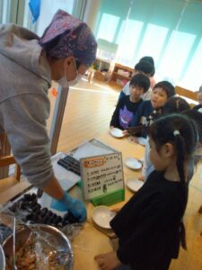 細巻き寿司を給食の先生が作ってくれました。