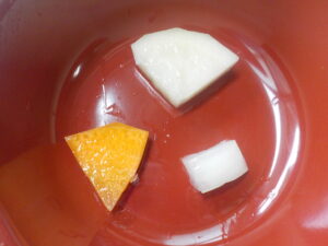 このように、乳児食の食材は1cm角位の大きさに切っています。
