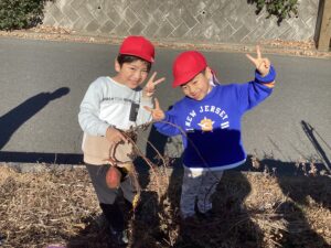今年はあまり豊作ではありませんでしたが、2人で一つのツルをうんとこしょ!と引っ張ってさつまいもを収穫することができました✨