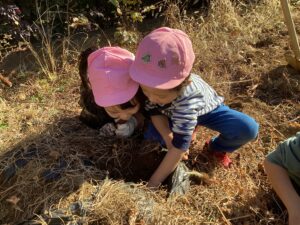 自分の場所のさつまいも掘りが終わった後に、掘って探しているお友だちを見つけると、その場に駆け寄り、助けてあげようとする姿が印象的でした👏🏻