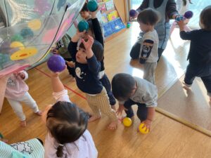 「届かない〜」「ボール見つけたー!」