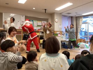 プレゼントを忘れてしまったあわてんぼうのサンタさんと一緒にみんなでダンスを楽しみました♪