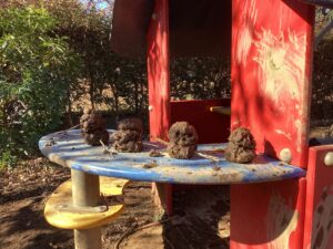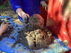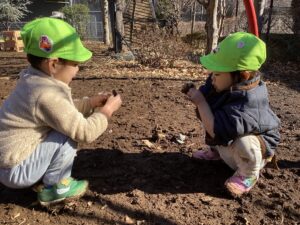 そんな園庭がこの前は霜が降りてぐちょぐちょになっていましたが、その土を丸めていると、、、「ゆきだるまができそう!⛄️」