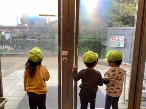 Information園庭に出る前、玄関で靴を履き終わった2歳さん。