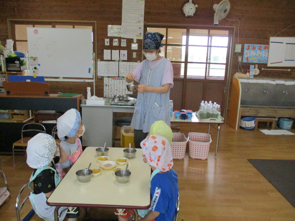 先日、きりん組(4歳児)さんが、クッキングを行いました。