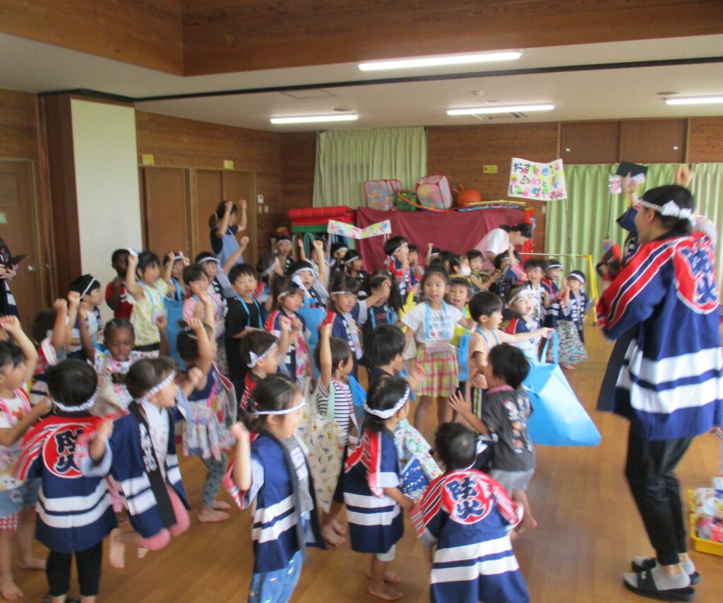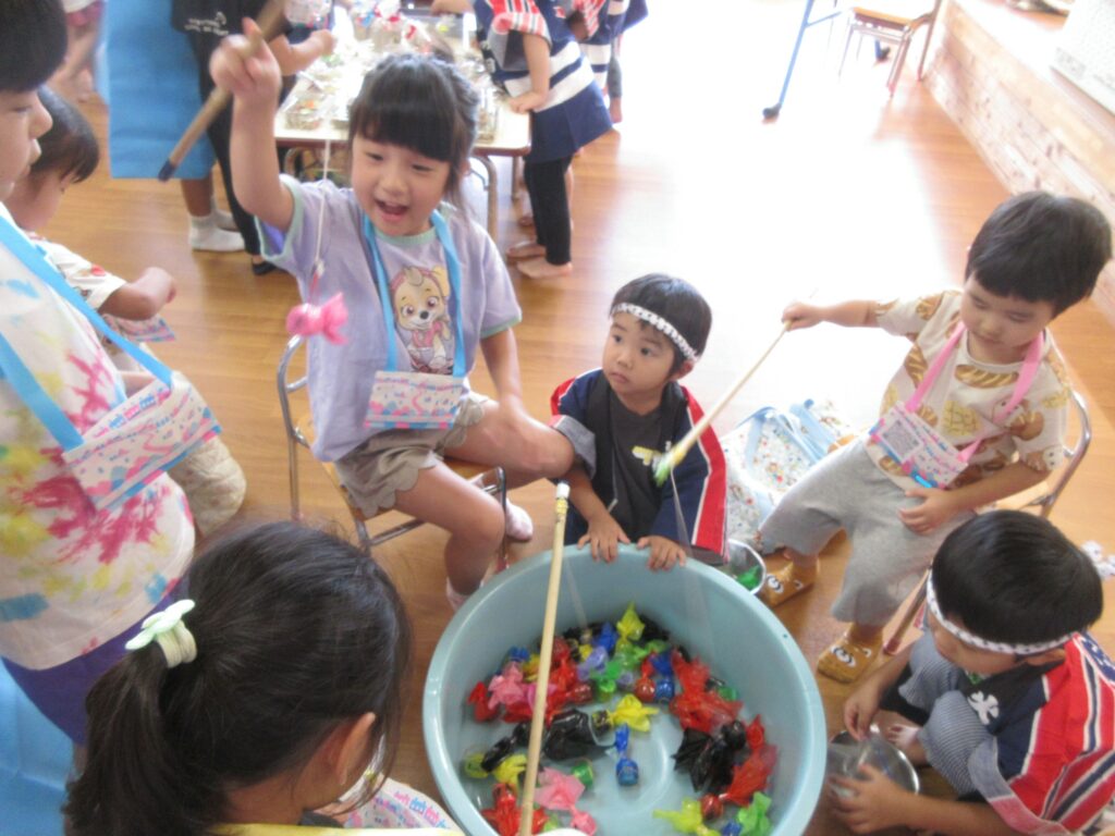 準備の段階から、幼児3クラスで協力し合って夏まつり(お店屋さんごっこ)ができました。