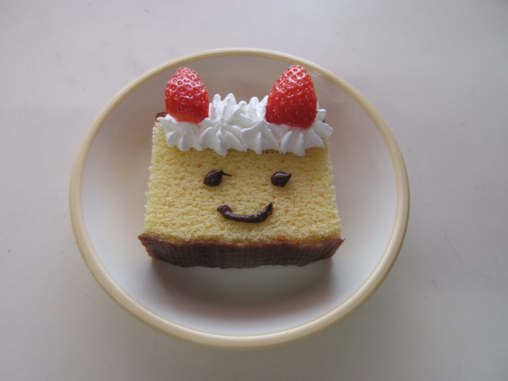 本日のおやつは、カステラを使って給食の先生手作りの「鬼カステラ」でした。
