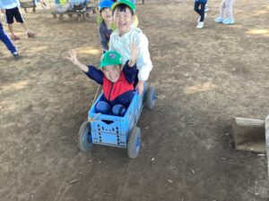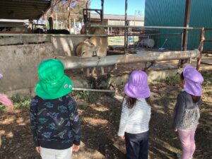 この日は、2〜5歳児クラスが一緒に加藤牧場へ。