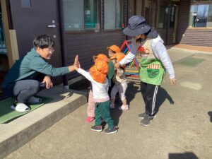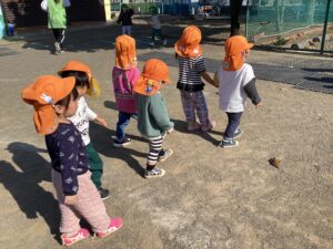 "こんな風に手をつなぐんだ"と大きい子たちから学んだり、日々の先生たちからの声掛けで"手を離さないで前を見て歩く"が身についたり。