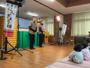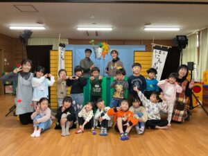 セリフのない劇でしたが、かかしの動きや展開に笑い転げる子どもたち。