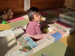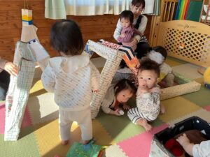 お部屋では、牛乳パックで作ったトンネルが大好き✨