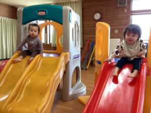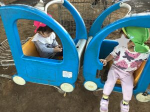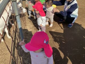 行きと帰りは散歩車やベビーカーに乗って行きますが、牧場ではあちこち歩き回る子も多いです✨