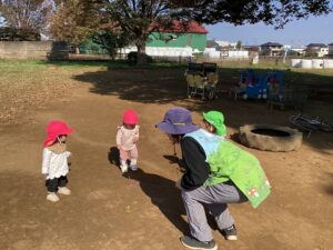 入園した頃はまだまだ歩けず、お散歩先といえば"開栄寺をひとまわり"が多かったひよこぐみさん。