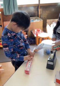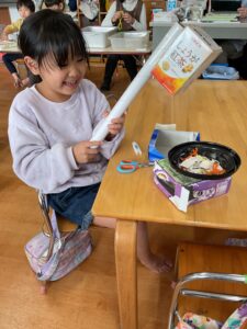 “もったいない製作"で、毎日いろいろな物を作っている開栄保育園の子どもたち