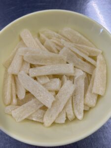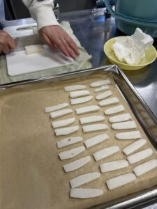 おもち(みんなが観察しているおもちとは別の、職員がついたもの)を薄く切って