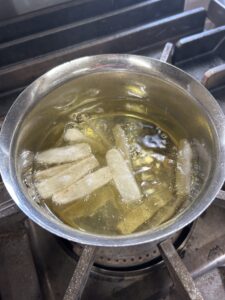 カラカラに乾燥されたおもちを、油の中に入れ、