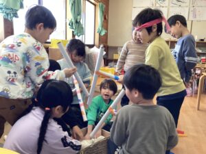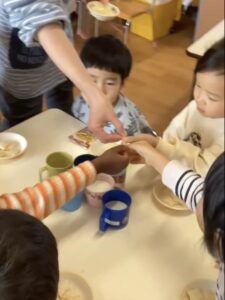 各クラスで、おもちの絵本を見たり、もちつきごっこをしたりと盛り上がっています!