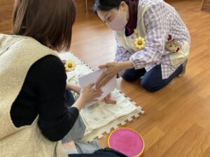 まだ小さいお友だちはお母さんが製作する様子を感じながら、雰囲気を楽しんでいましたよ☺️
