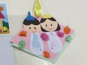 今日は、まず親子でおひなさまの製作をしました。