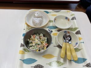 きゅうり・人参・コーンの野菜とハムが入ったおからのサラダは、カレー風味がつくことで、お子さんたちにも食べやすく人気のメニューです!