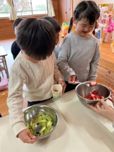 みんなで買ったフルーツを入れて、、、