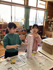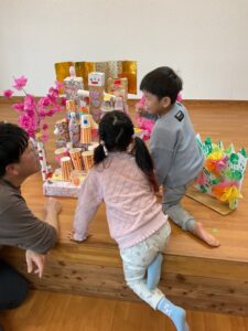 「みんなでひな壇作ってるのー!」