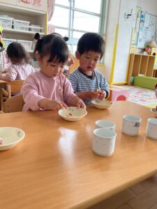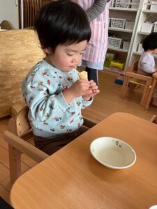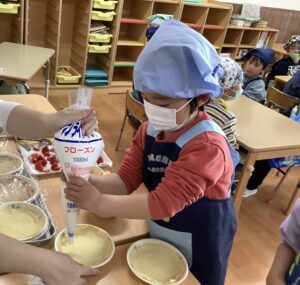 はじめにいちごから食べる子やクリームから食べる子様々でした♪