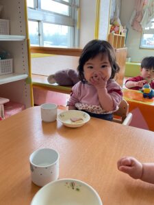 ひよこ組はパンケーキ、ふわふわ美味しいね♪