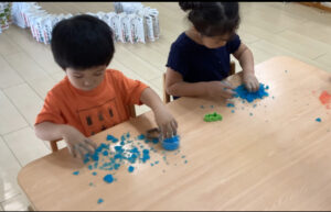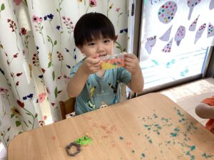 夏は冷たさを感じながら、感触遊びをたくさん楽しみました。