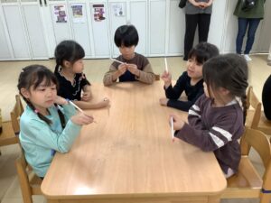 先日、学研えんぴつ教室がありました♪「今日は親指のことをもんぱぱ、人差し指をもんまま、中指をもんにいさんって 呼んでね!」 「はーーい!!」