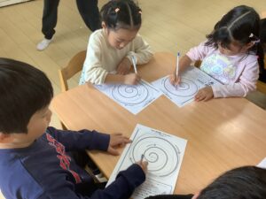 「ぐるぐるからはみ出してもいいんだって〜」 「たくさんぐるぐるしちゃうぞ〜!」