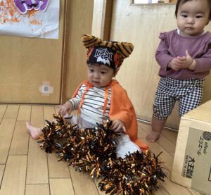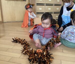今日は10月31日! 待ちに待ったハロウィンの日です♪ 西寺尾保育園のみんなは今日だけおばけに大変身!!! (ひよこ組)お耳が生えちゃった!