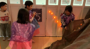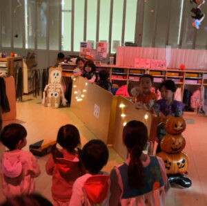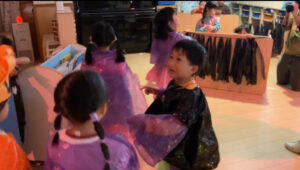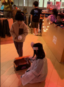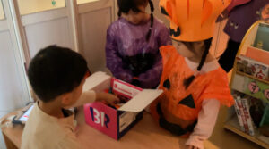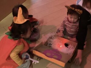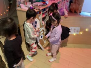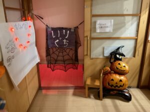 青組黄組でハロウィンの日に向けて準備を進めてきたハロウィン迷路おばけやしき! ずっと楽しみにしていたハロウィンの日になりました! どんなハロウィン迷路おばけやしきが出来上がっているかな!?入ってみると…