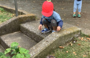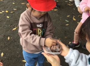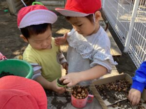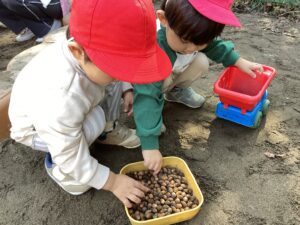 園庭にどんぐりを持って行くと、