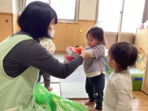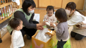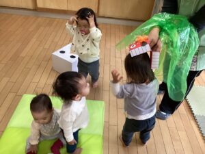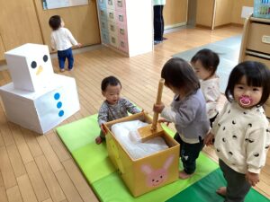 新年を迎え、ひよこさんでもお正月遊びを楽しみました。お餅つき。ぺったんこ〜ぺったんこ〜