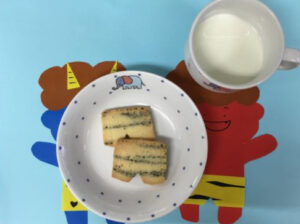 給食の先生『黒ゴマを使って模様を作ったんだよ〜!』