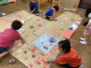 絵の具、クレヨン、風船、歯ブラシ様々なものを使用してお絵描き!