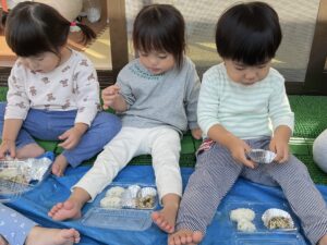 テラスでみんなで食べるお弁当は格別だったようで、おかわりもあっという間になくなりました。