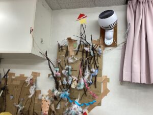 発表会で使ったおもちの木をクリスマスツリーにしよう