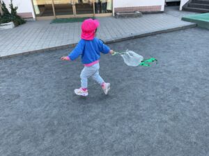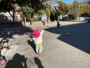ふくらんだ凧を見て「かんたろう つかまえた!」と喜ぶ姿も。