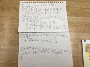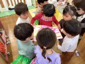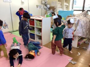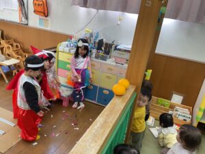 幼児組はオニ役、豆まき役、福の神役など自分のやりたい役になりたいという話になり、たくさんの話し合いを行い計画していきました。